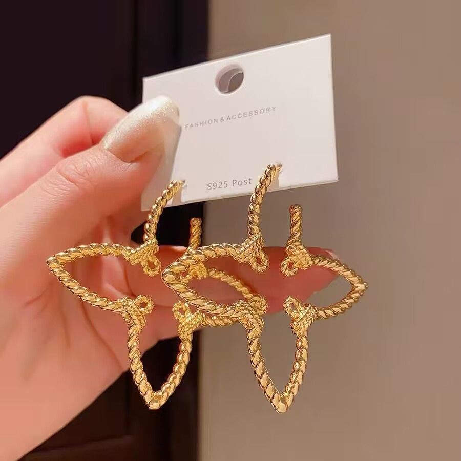 Light Luxury Zhong Chuxi's Same Style French Cut Out Flower Earrings for Women European and American Style Exaggerated High-End Niche Gold Earrings