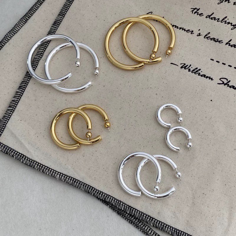 2024 new European and American simple niche design gold pigment ring earrings women's C- shaped opening metal earrings wholesale