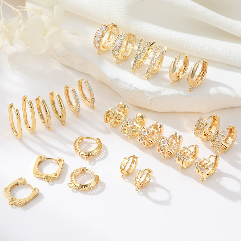 European and American Cross-border Fashion U-shaped Geometric Earrings Women's 14K Micro-inlaid Zircon Earring Buckle Body DIY Earrings Accessories