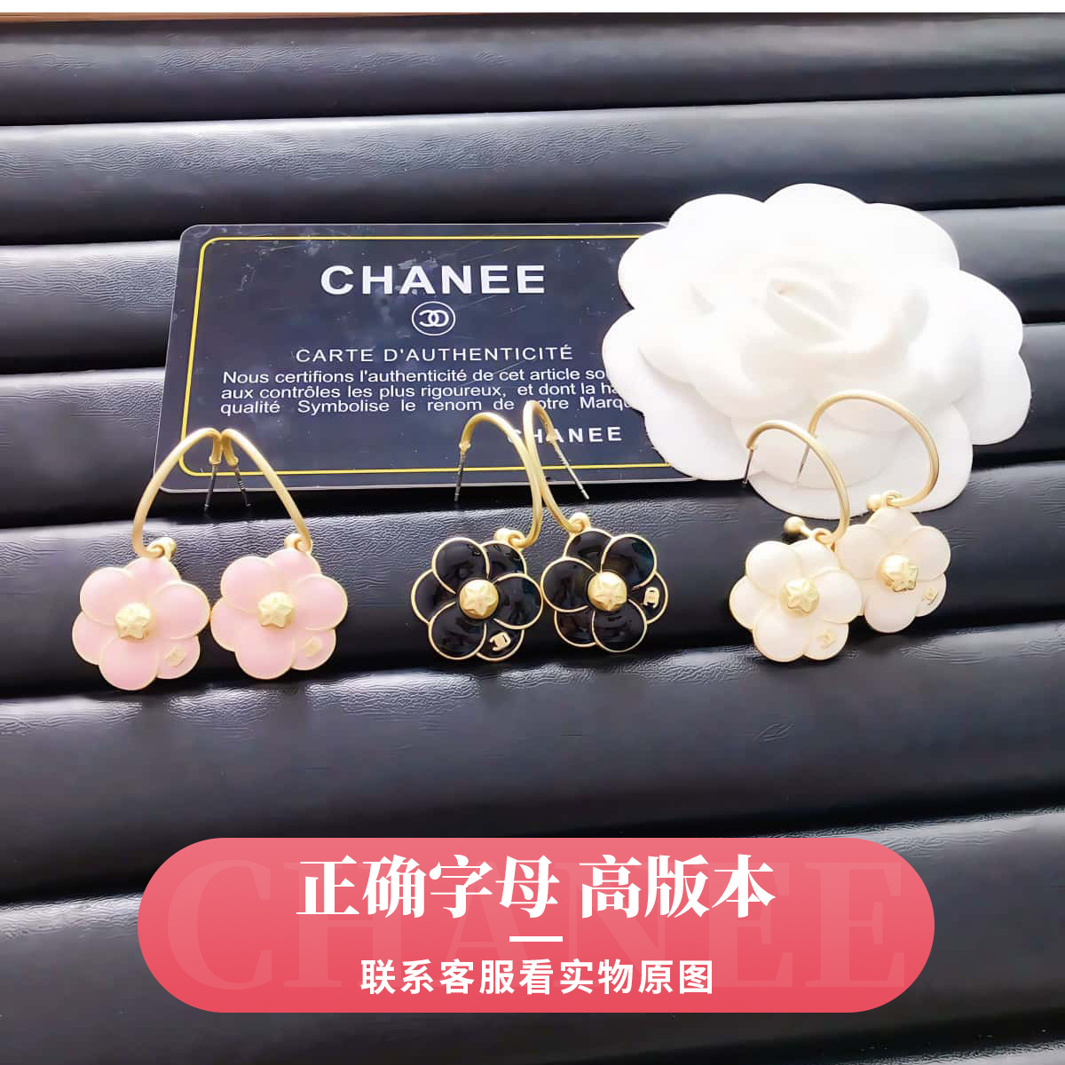 Xiangjia Camellia Earrings Women's Copper Gold Plated Oil Drop Light Luxury High-end Sense Earrings Small Chanel Style Double C High Version Jewelry
