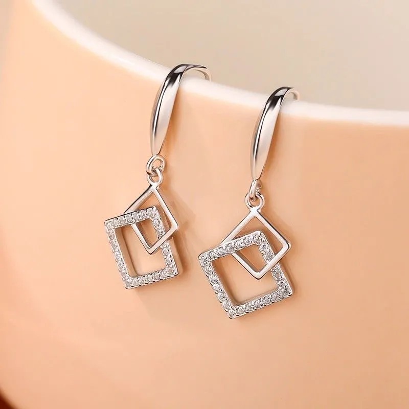 Sparkling Diamond Cut Out Rhombus Earrings for Women, Sparkling Diamond Elegant Elegant Ear Hooks, Niche Design, High-End Earrings, Women's Ear Jewelry