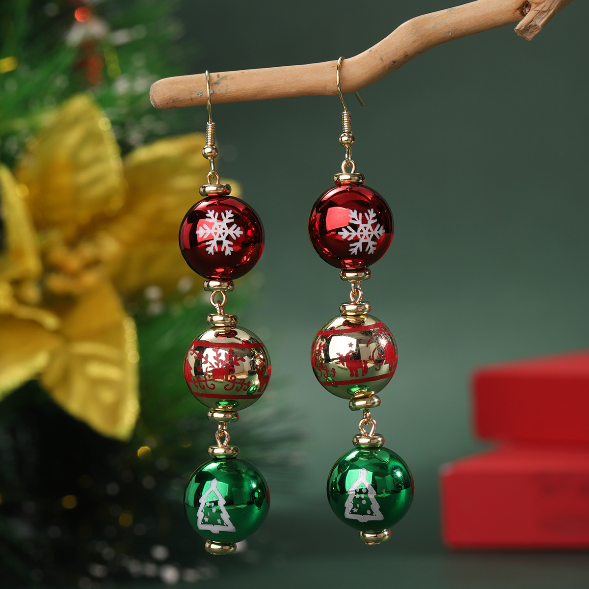 New Christmas Element Printed Snowflake Christmas Tree Elk Handmade Resin Ball Women's Earrings
