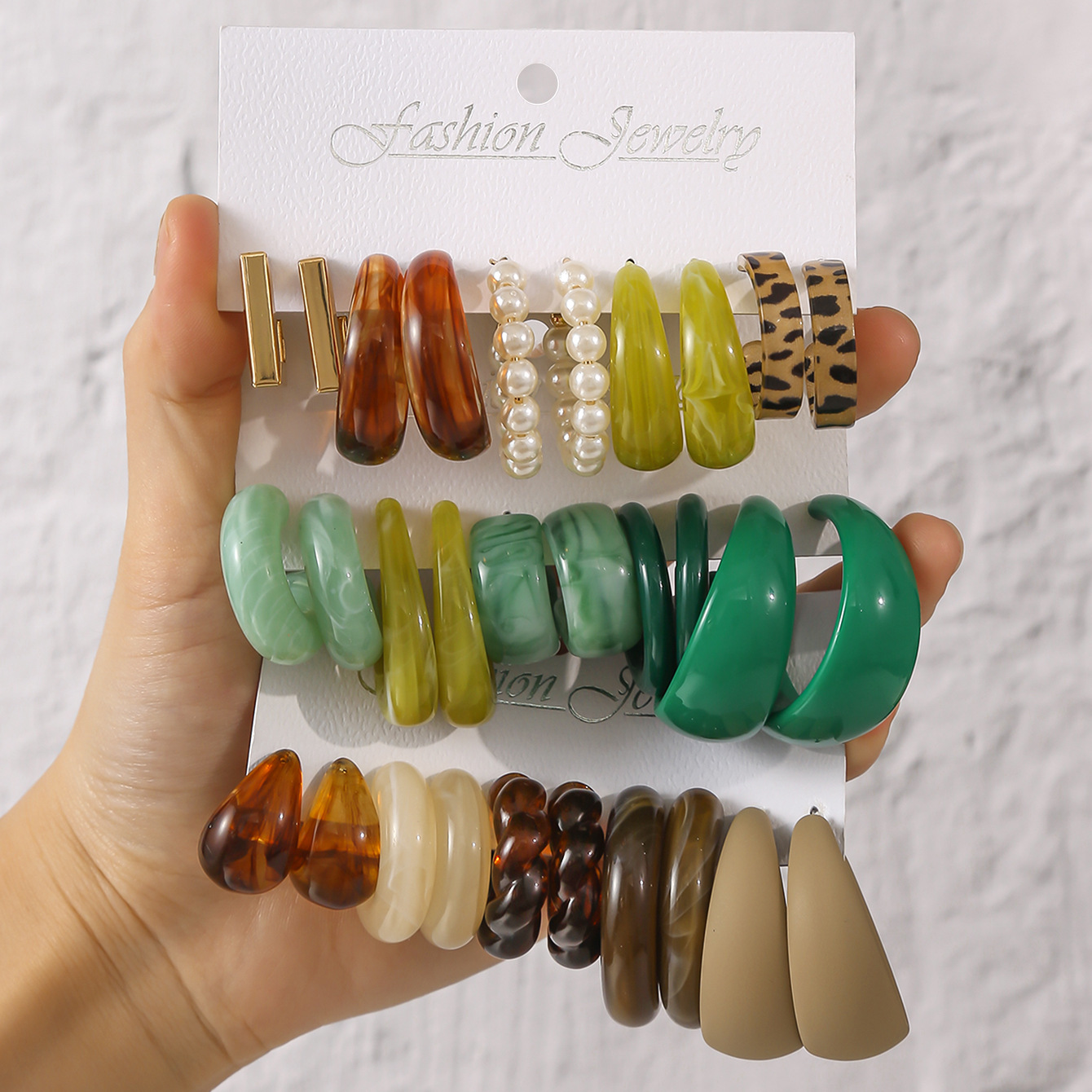 European and American Cross-Border Hot-Selling Creative Personalized Design Earring Set Irregular Geometric Hoop Earrings Women's Resin Earrings