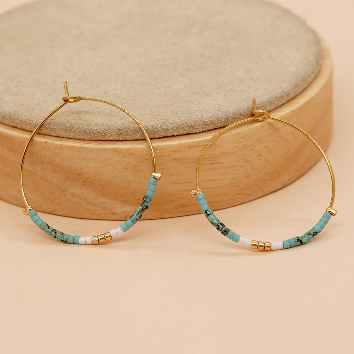 Cross-Border Popular Ins Style Personalized Fashion Round Rainbow Color Rice Beads Beaded Women's Earrings Hoop Large Earrings