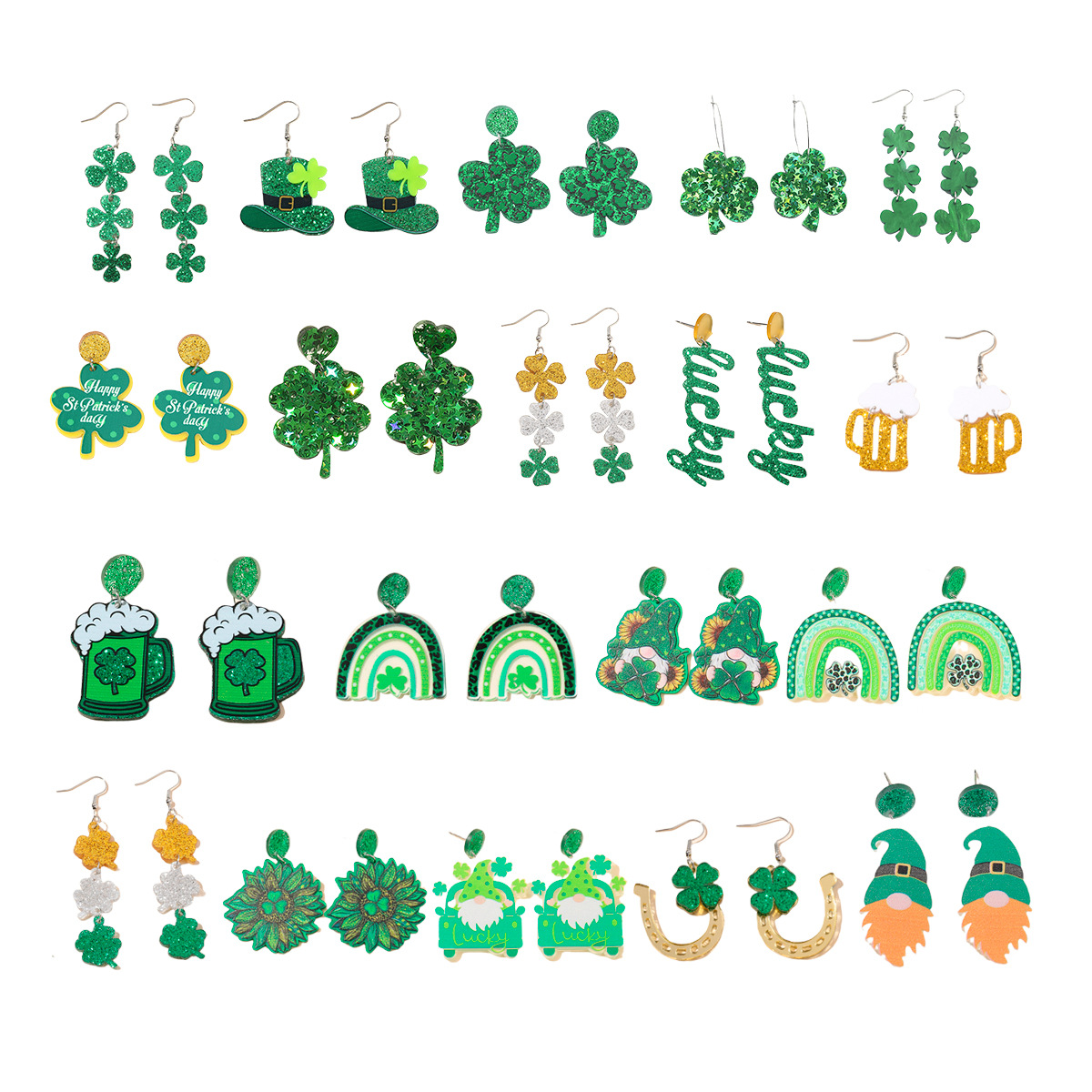European and American Cross-border Explosions St. Patrick's Carnival Green Acrylic Glitter Lucky Grass Earrings Women's Earrings