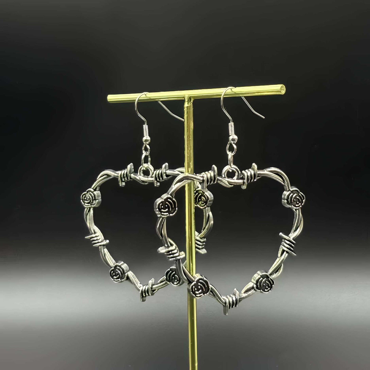 Hot-Selling Foreign Trade Ins Style Simple Thorn Rose Heart Earrings Niche Design Women's Earrings Elegant Accessible Luxury Earrings