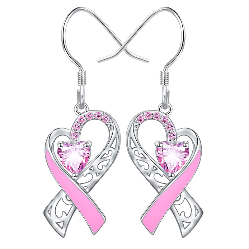 Simple Pink Love Ribbon-shaped Earrings with Diamond Love Creative Encouragement Courage Ladies Temperament Earrings Ear Hook