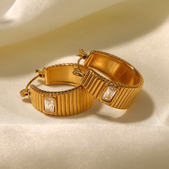 E127 European and American ins Rib Circle Earrings Women's French Retro 18K Gold Fashion Earrings Jewelry