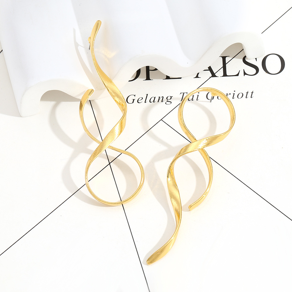 European and American Simple Cross-border Metal Line Shape Geometric Asymmetrical Ladies Fashion Accessible Luxury Cross-border Jewelry Earrings
