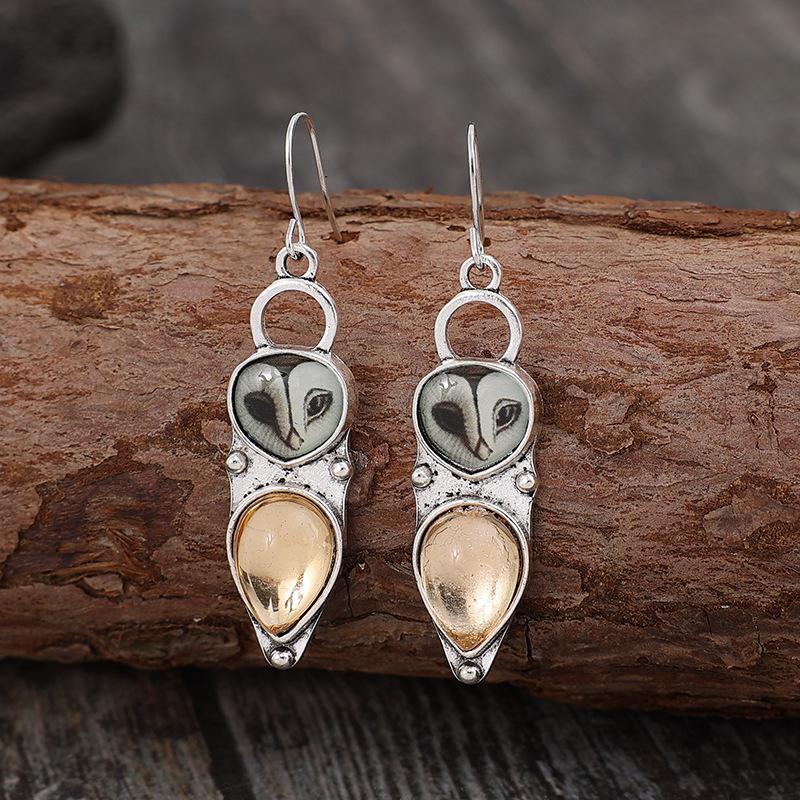 Yingxiang Cross-Border Hot-Selling Retro Owl Inlaid Cat's Eye Earrings Personalized Niche Design High-End Women's Earrings