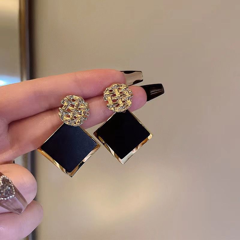 Light Luxury Geometric Black Square Earrings Design 2023 New Simple Retro Fashion High-End Women's Earrings