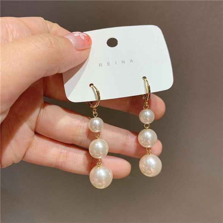 Personalized long tassel pearl earrings Korean style high-grade elegant elegant women's exquisite white pearl earrings