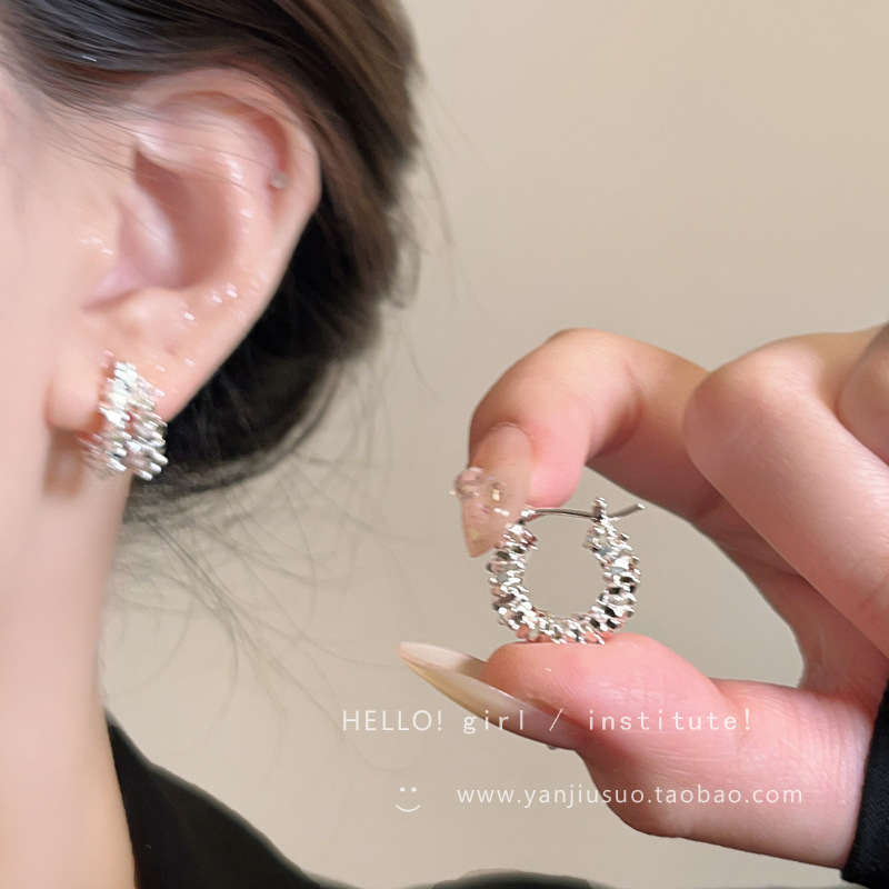 Sparkling Double-Layered Broken Silver C-Ring Earrings for Women, Accessible Luxury, High-End Elegant Earrings, Everyday Versatile Earrings