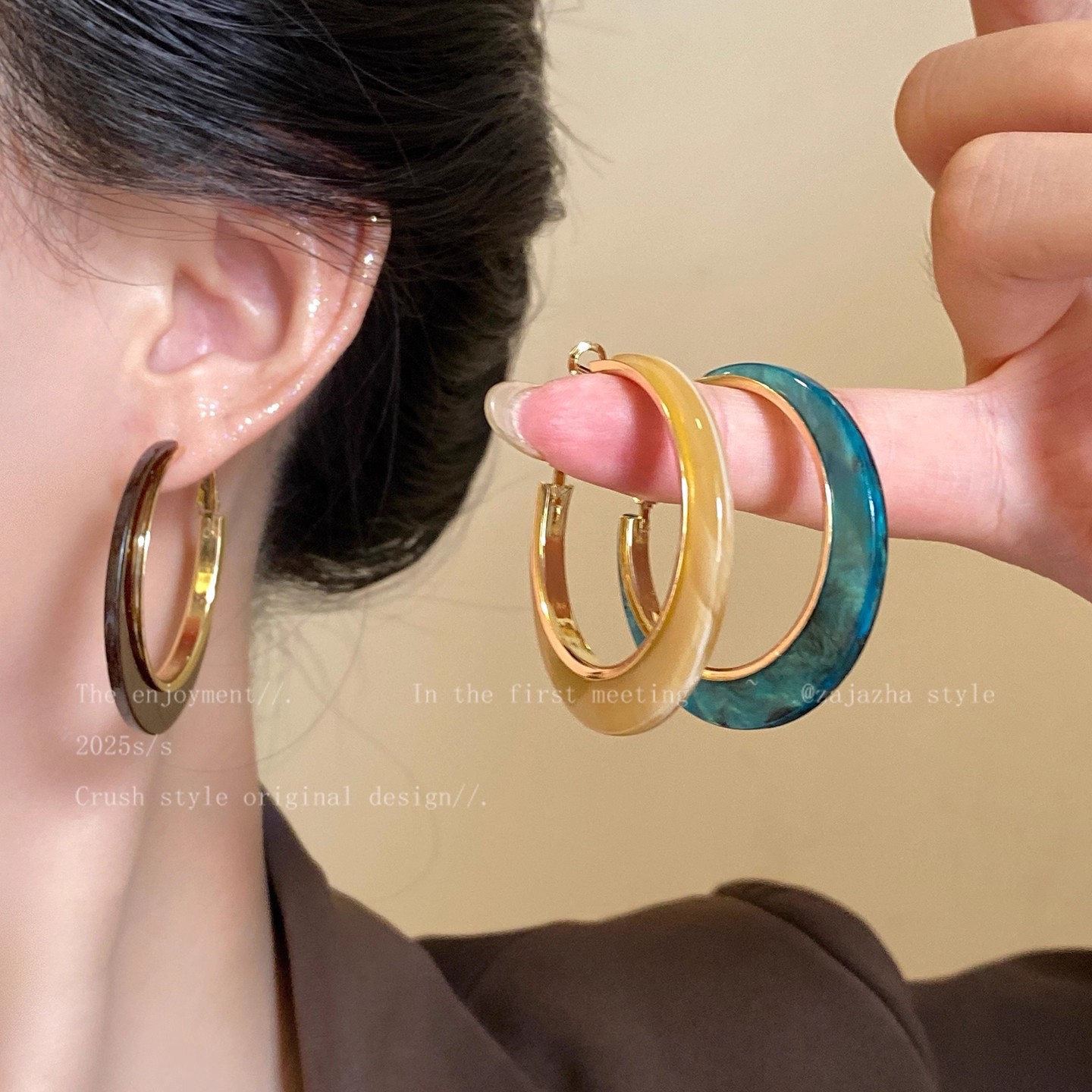 Maillard Retro Brown Large Hoop Earrings for Women Hong Kong Style 2025 New Hot Style High-End Elegant Earrings