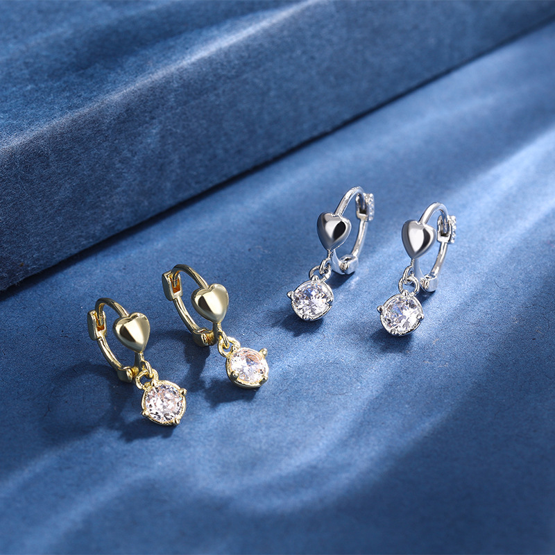 s925 Silver Zircon Love Ear Buckle Women's Korean-style Simple All-match High-end Elegant Light Luxury Niche Design Sense Earrings