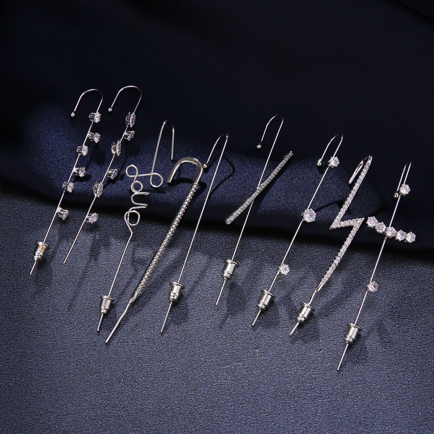 Korean Style Super Fairy Copper Inlaid Zircon White Golden Piercing Ear Needle Surrounding Ear Bone Clip Oblique Wire Earrings for Women Manufacturer Wholesale