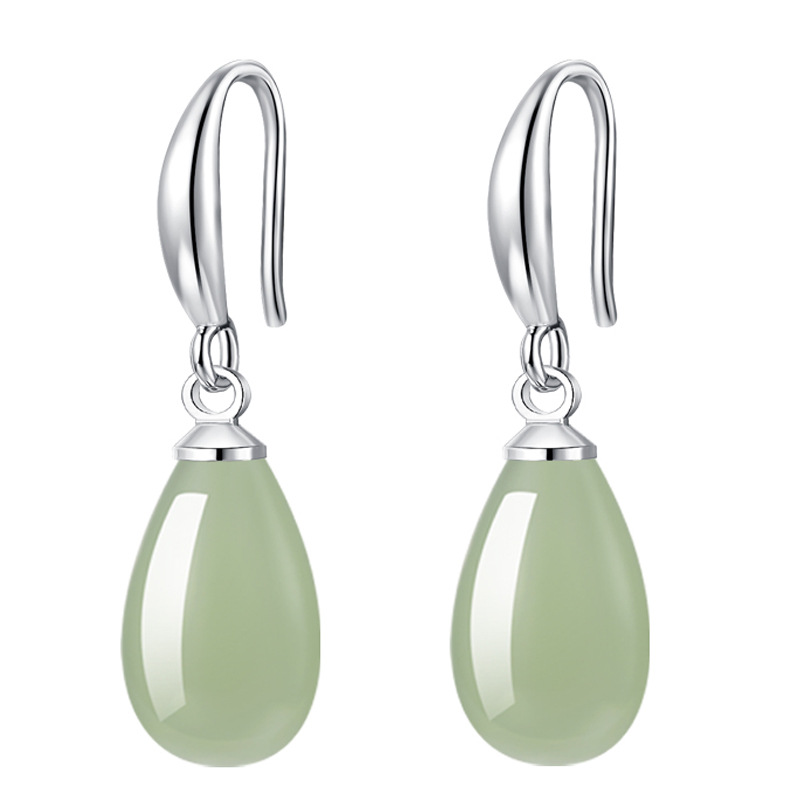 Eco Beauty Jewelry Imitation Jade Earrings for Women Imitation Pear-Shaped Water Drop Hetian Jade Green Jasper Chalcedony Gemstone Jewelry Earrings