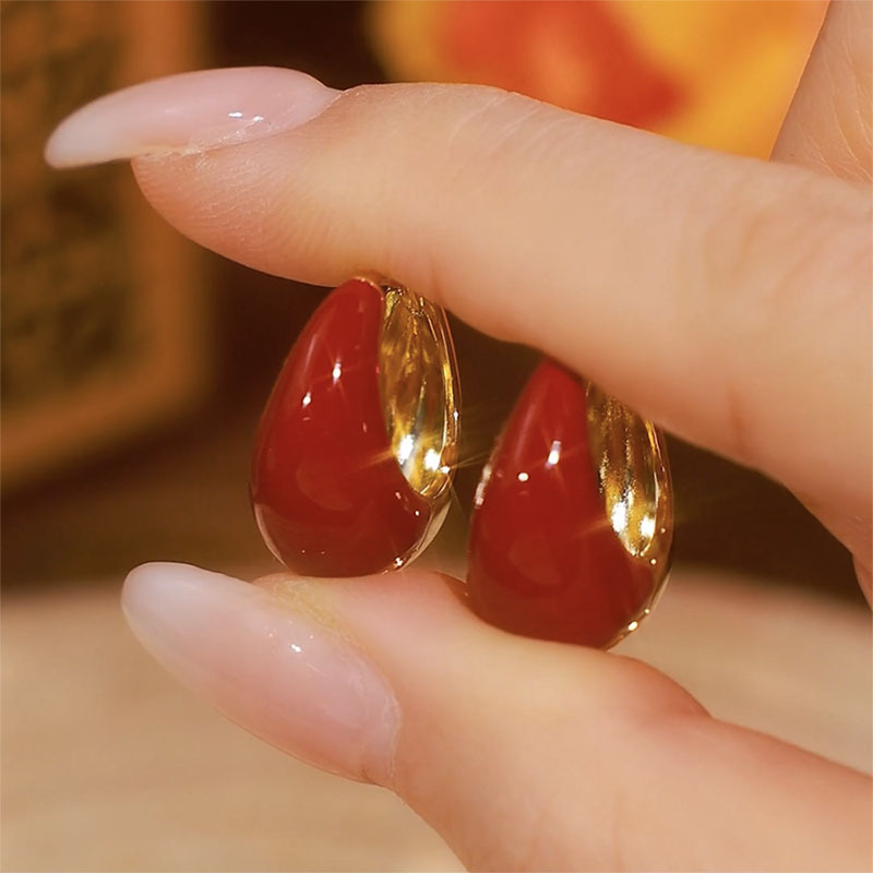 Love Only, Liang Youan and Zhou Yutong's Same Style Earrings, Red Earrings, Niche Design, High-End Earrings, Earrings for Women