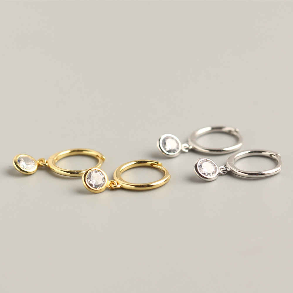 Simple Style Geometric White Round Diamond Fresh Ear Buckle Women's Japanese and Korean Short Ear Jewelry Earrings Copper Japanese and Korean E301