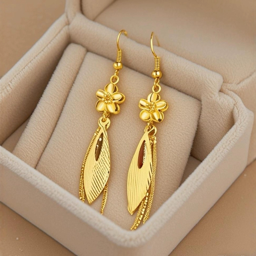 Wholesale Vietnamese Sand Gold Flower Tassel Earrings for Women, Color-Plated Earrings, Transfer Bead Earrings for Wedding First