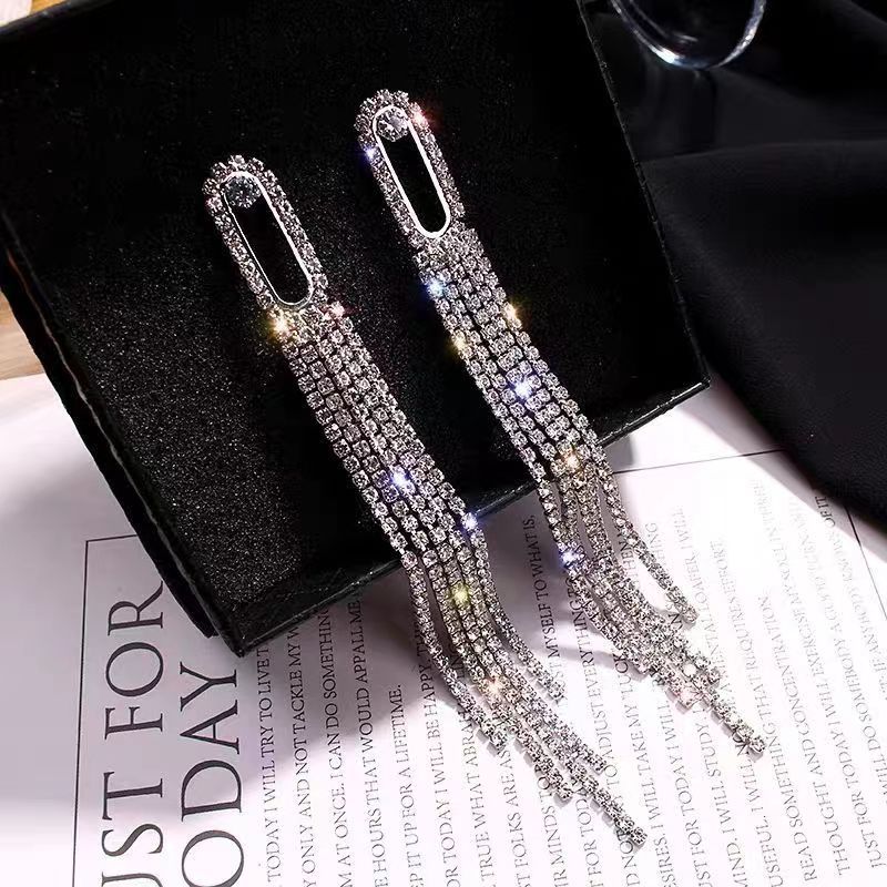 Simple tassel earrings High sense S925 silver needle full diamond fashion Net red Joker temperament earrings female manufacturers wholesale
