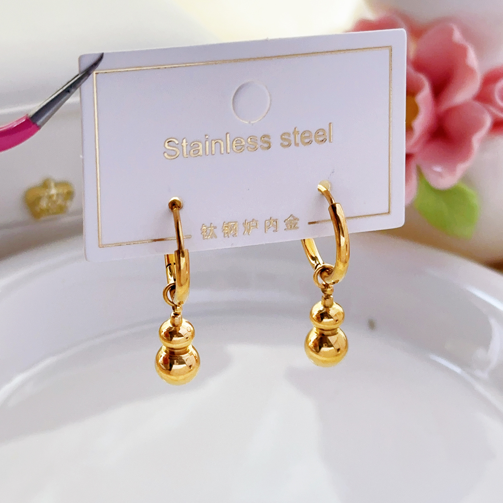Simple Titanium Steel Gourd Earrings Women's Temperament All-match Fashionable Ear Buckle High-end Niche Design Fashion All-match INS