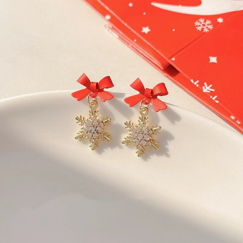 New Fashion Bow Snowflake Diamond Earrings Women's Korean Niche Design Sense French Style S925 Silver Pin Earrings Trendy