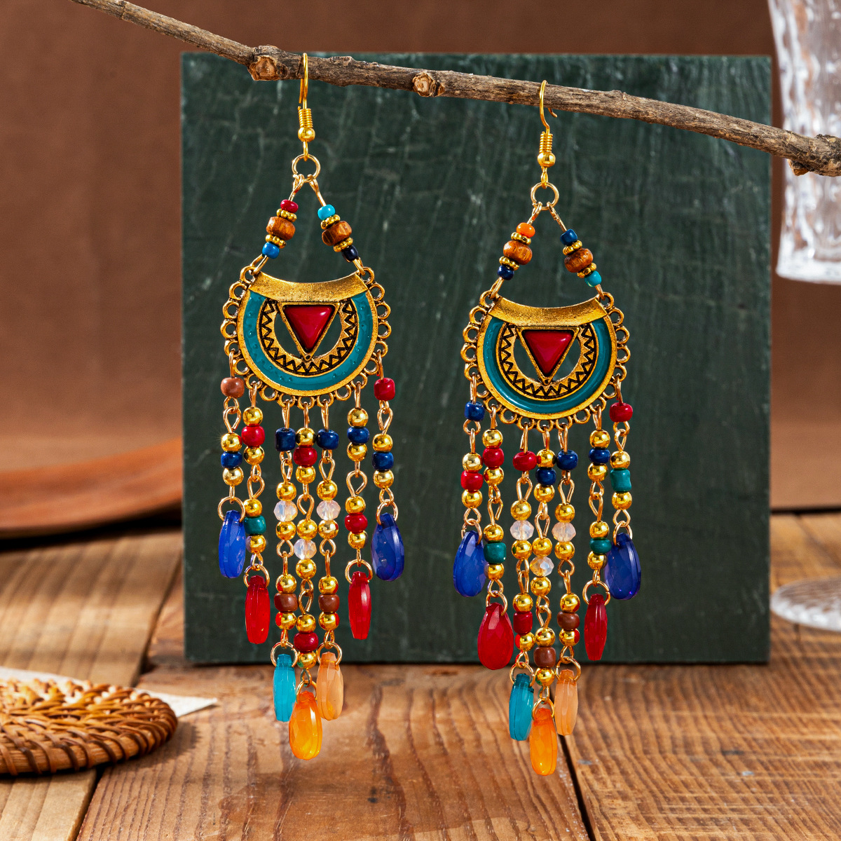 Ethnic Style Vintage Earrings Middle East Exaggerated Indian Style Oil Drop Earrings Long Women's Water Drop Tassel Earrings