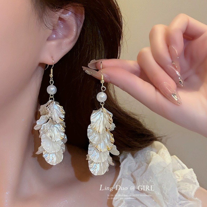 Petal Tassel Pearl Earrings 2025 New Hot Style High-End Accessible Luxury Earrings Ear Hook French Style Earrings for Women