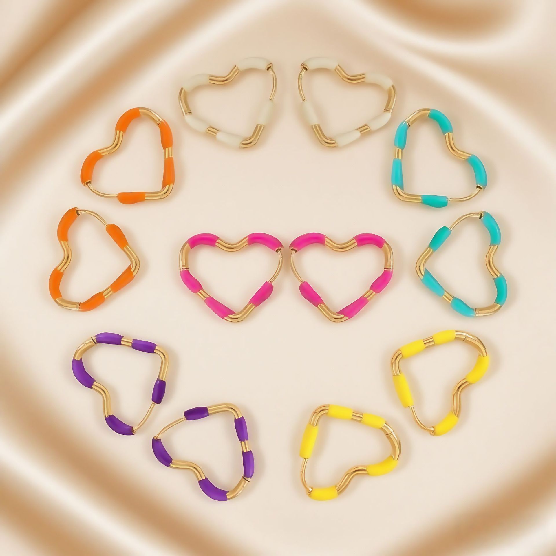 Colorful Oil-Drip Heart Earrings for Women, 2025 Summer New Niche Design, Unique Ear Hoops, Simple and Versatile, in Stock