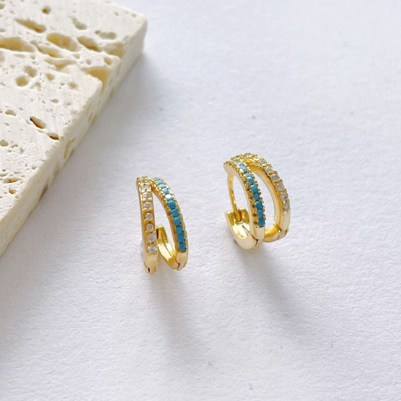 Cross-border Hot Sale High-grade Double-row Diamond Turquoise Ear Ring Women's Light Luxury Design Fashion Earrings Ear Buckle Ear Jewelry