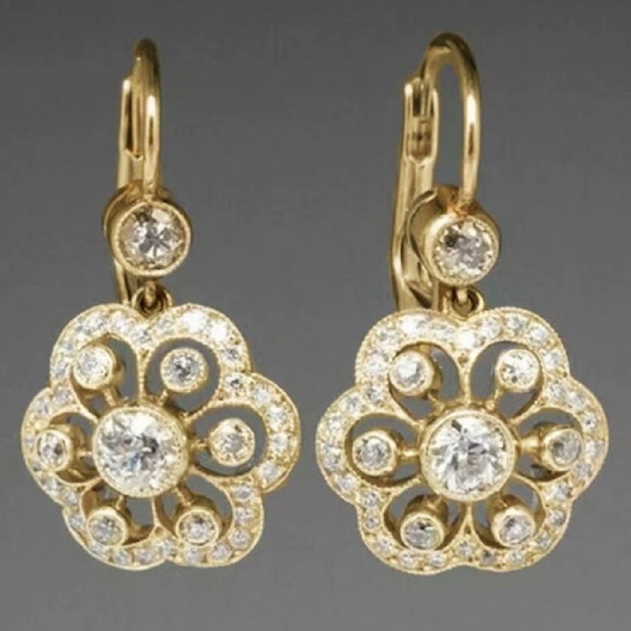 Jianjie New European and American Exquisite Fashion Zircon Elegant Earrings Double Color Hollow Flower Drop Earrings Women