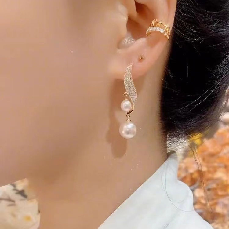 Fashion Elegant Golden Earrings Pearl Diamond Design Earrings S925 Silver Needle High-end Sense Exquisite Women's Earrings