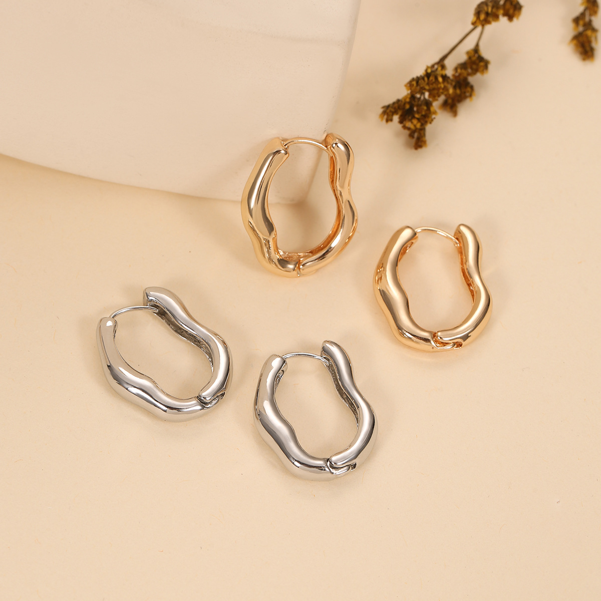 European and American Fashion Irregular Oval Ear Buckle Women's Cross-border Hot Ring Earrings Simple Elegant U-shaped Gold Earrings