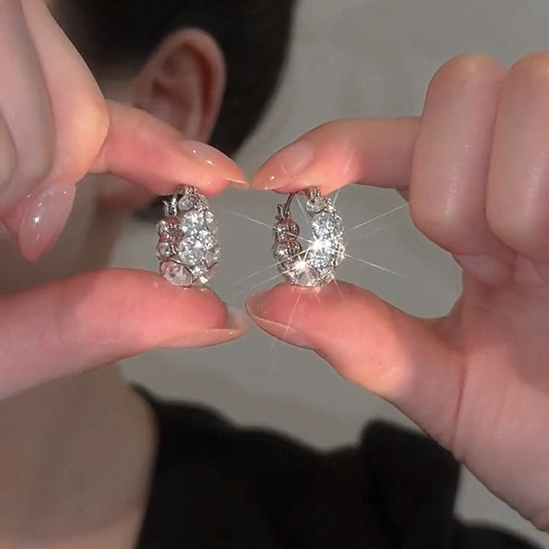 Exquisite Super Flash Full Diamond Ring Earrings High-end Light Luxury Niche Design Earrings Women's All-match Earrings Wholesale