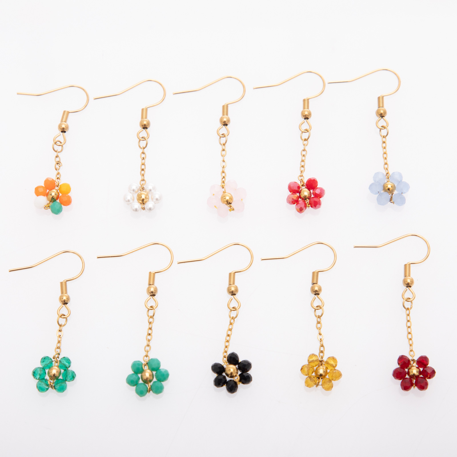 Color Crystal Flower Pearl Flower Stainless Steel Earrings Design Sense Ins Style Titanium Steel Earrings Women's High Sense Jewelry