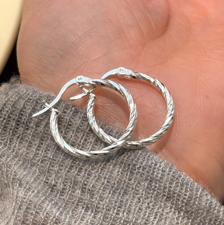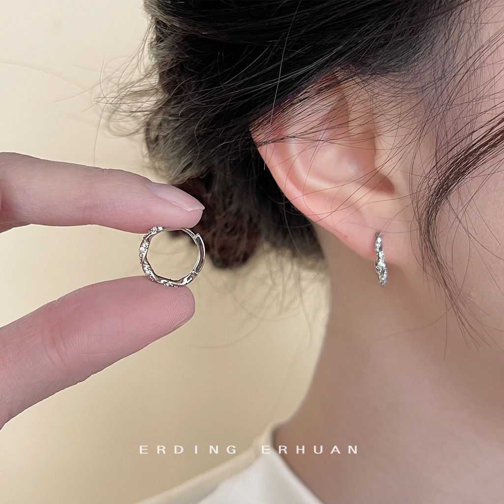 Korean Geometric Twist Circle Earrings, Feminine Niche Design, Korean Versatile Sparkling Car Flower Modified Earrings