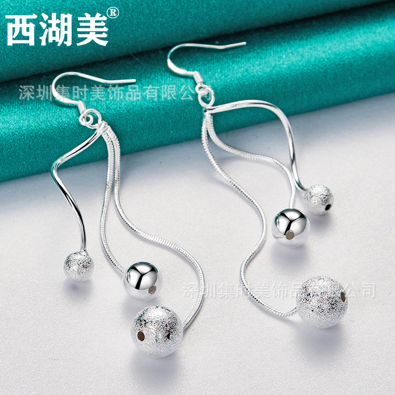 Silver jewelry smooth matte beads ball drop earrings female Jewelry earrings jewelry West Lake Beauty