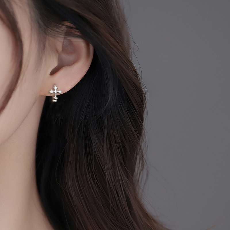 Ancient Cat Ningri Korean-style Cross Ear Buckle Distinctive Female Cool Male Female Lovers Diamond-encrusted Punk Style Ear Ring Earrings