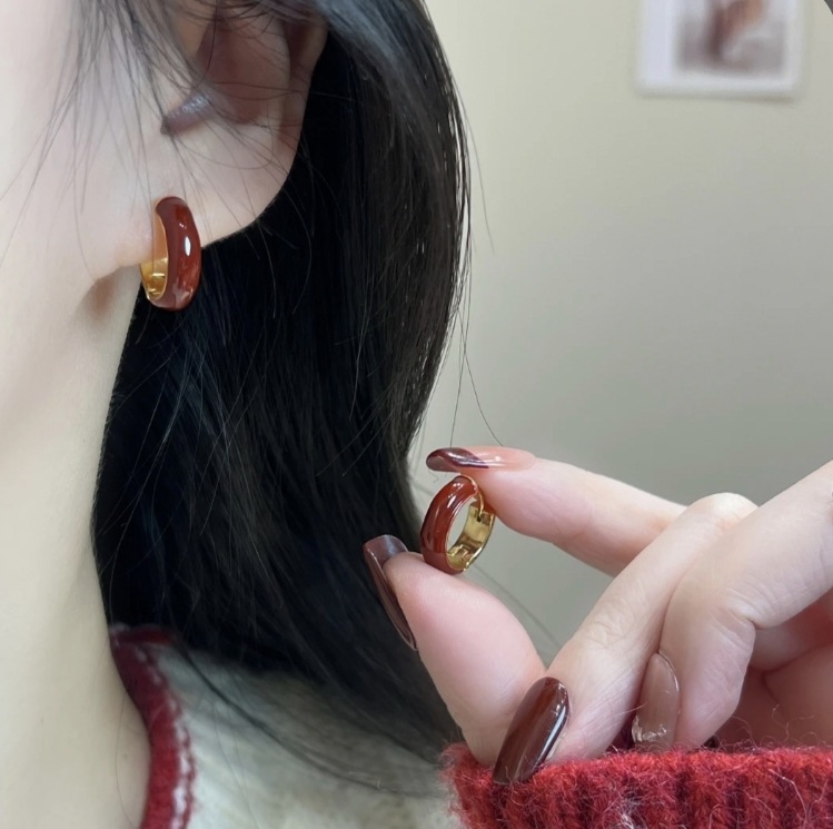 Ankora Red Drip Glaze Earrings for Women, New Young Luxury Design, High-End Earrings, Earrings, Simple and Versatile Hoop Earrings