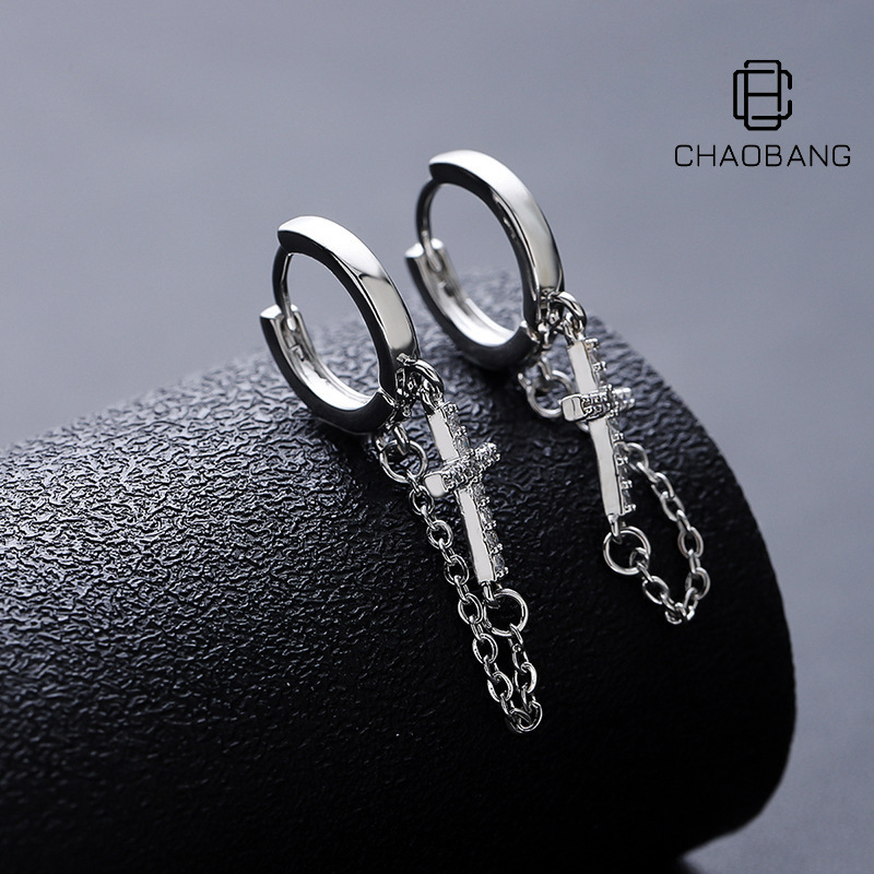 Cross Earrings Men's Diamond Tassel High-end All-match Hip-hop Earrings Women's Niche Simple Summer Accessories