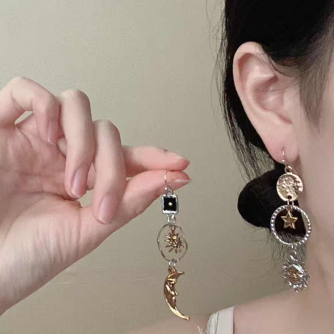 Retro Bohemian Style Ear Hook Sun Moon Star Long Earrings Niche Fashion Versatile Exquisite Women's Jewelry
