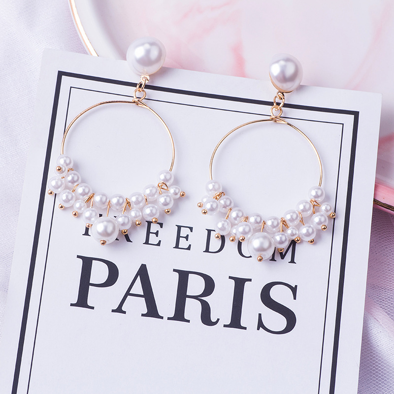 Dongdaemun New Ins Hollow Circle Long Pearl Ear Ring Elegant Simple Slimming Tassel Earrings Mixed Batch Women