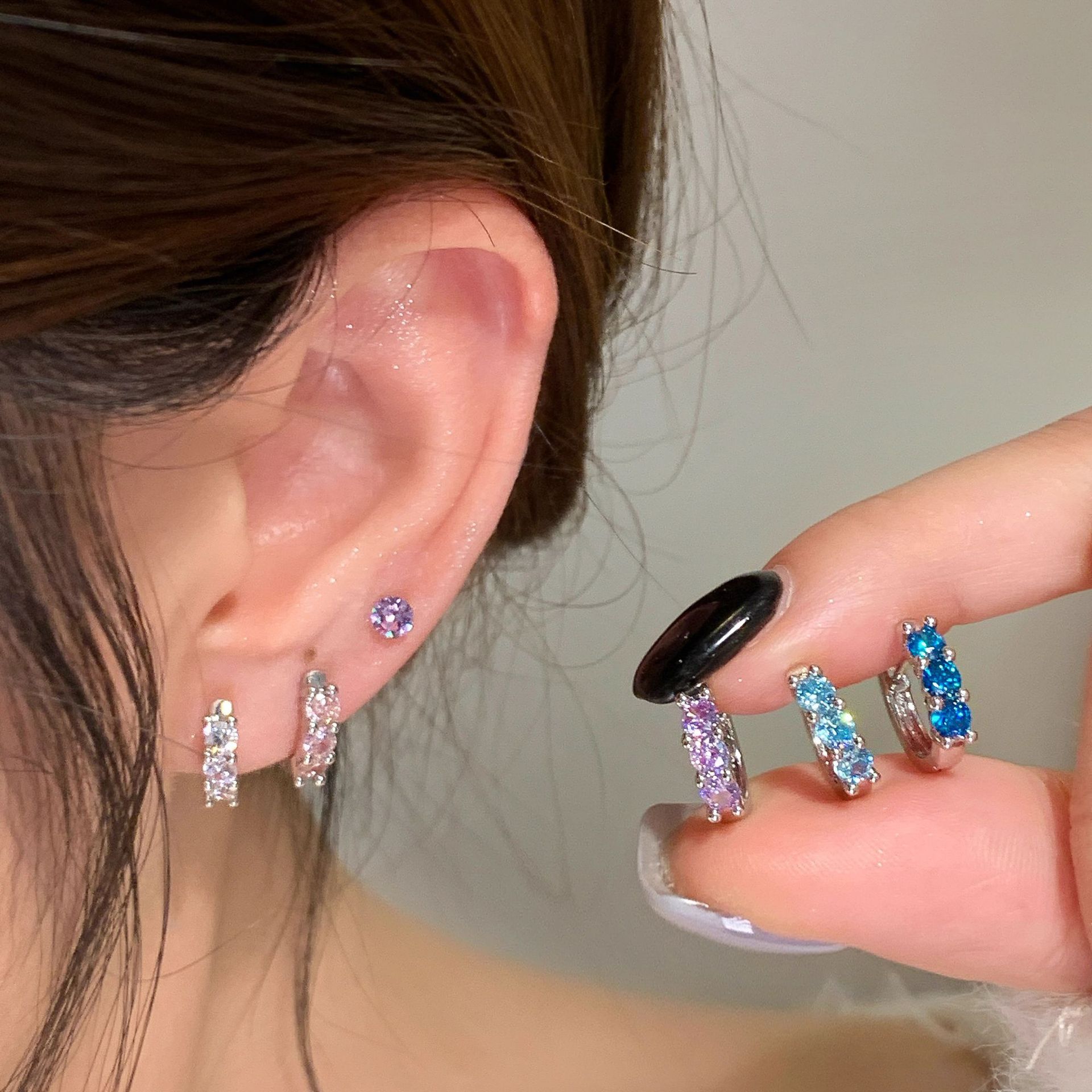 Manufacturer Wholesale Earrings for Women, Small, Simple and Elegant, Diamond-Encrusted Round Earrings, Sparkling, Versatile, High-End, Trendy Brand, Japanese and Korean Style