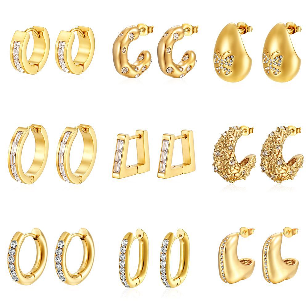 Cross-border fashion sticky diamond stainless steel earrings women's all-match inlaid zircon earrings light luxury trendy earrings wholesale