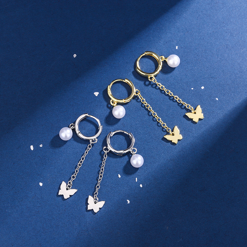 Short Pearl Small Ear Buckle Korean Internet Celebrity Niche Elegant Sweet Tassel Butterfly Ear Ring Earrings Women's ins Trend