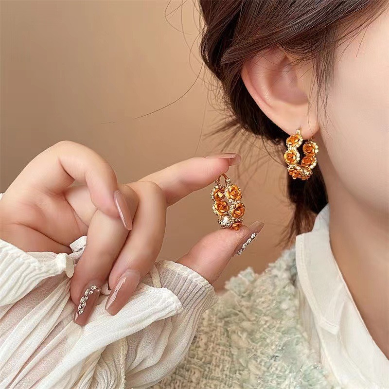 Hoop Flower Earrings Women's 2024 New Explosive Light Luxury Advanced Sense Earrings Niche Unique Design Elegant Earrings