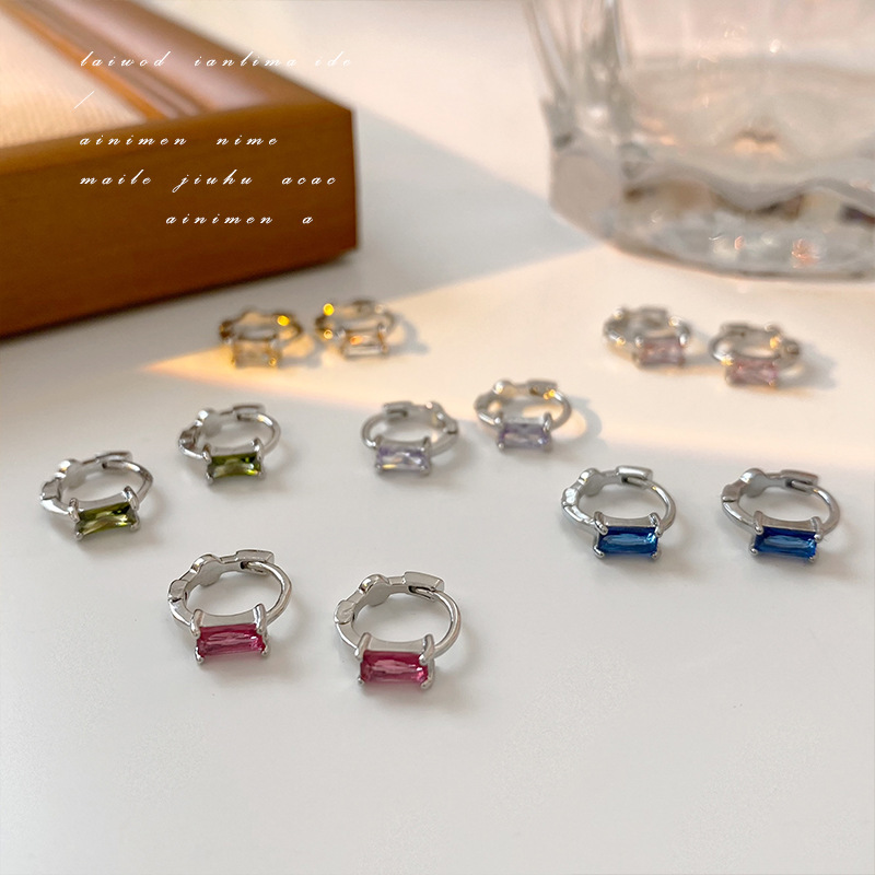 Colorful Square Ear Buckle Women's Ear Ring Simple Small Elegant Korean ins Style Niche Design High Sense Earrings
