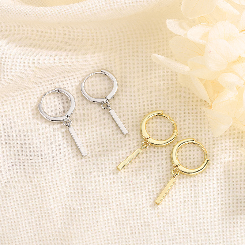 s925 Geometric Straight Bar Ear Buckle Women's One Word Eardrop Niche Earrings Elegant Cold Wind 2023 New Fashion