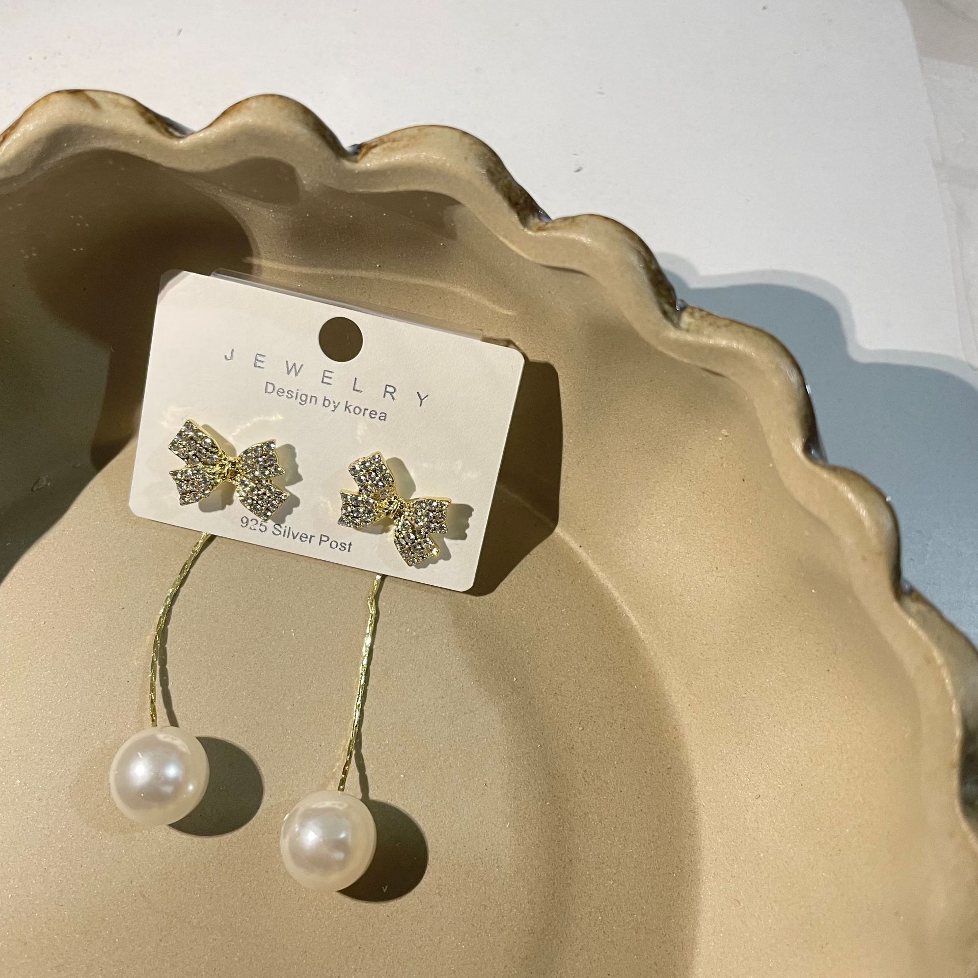 Korean high-end luxury exquisite bow earrings Pearl temperament tassel a two-wear niche style earrings for women